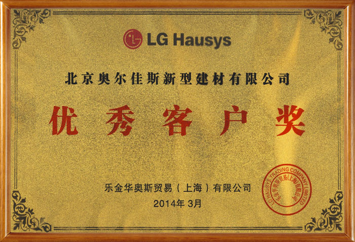 北京奧爾佳斯新型建材有限公司獲得韓國LG Hausys總部頒發的“優秀客戶獎”。 ...